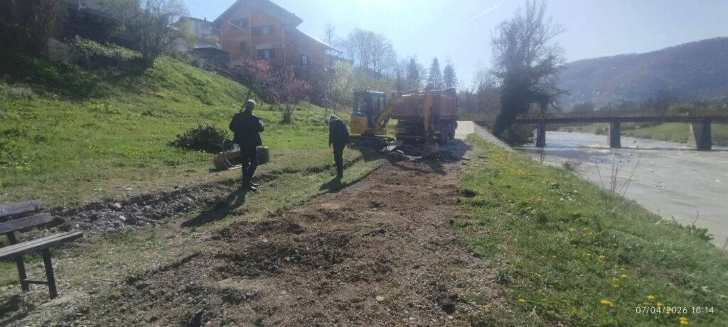 КОТОР ВАРОШ, 7. АПРИЛА – На шетлаишту од моста у насељу Котор до купалишта на Брани настављени су радови на уређењу и стварању оптималних услова уочи предстојеће љетње сезоне.
